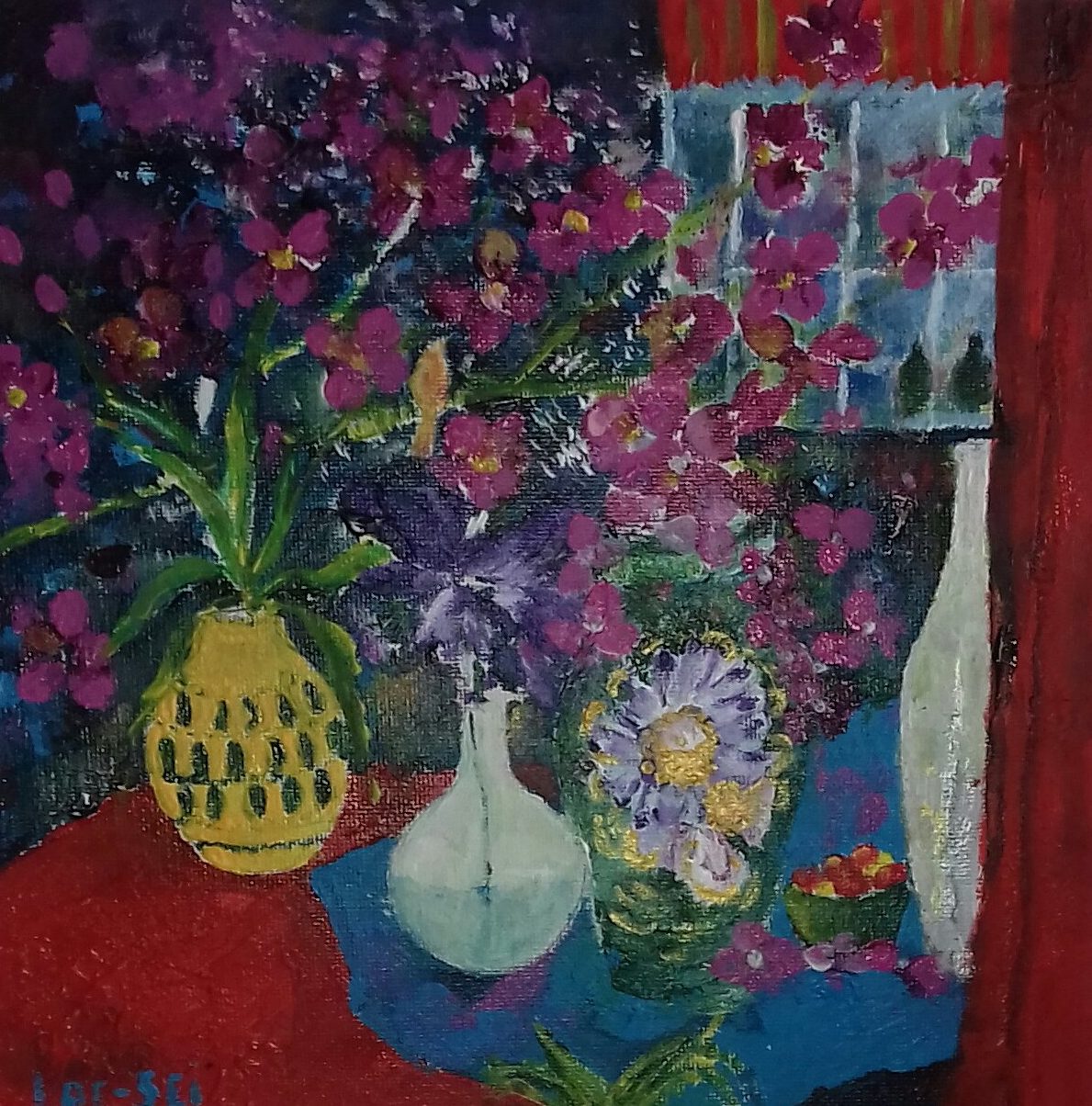 Een globale impressie van het schilderij "Stilleven" 25x25cm.