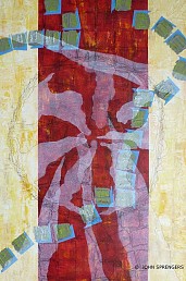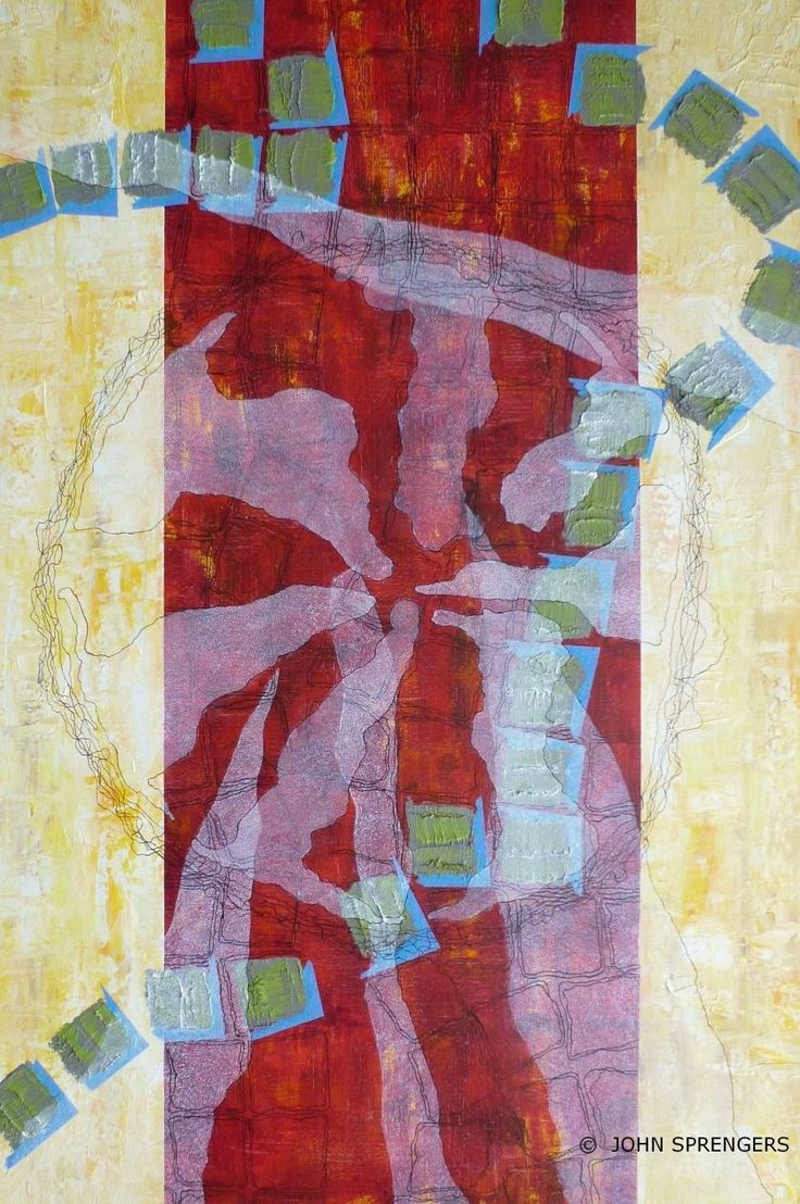 Levenspad of een circle of life....?? Olieverf en Inkt op Linnen Ingelijst (stalen baklijst) en gesigneerd Het werk kan zowel in de lengte als in de breedte worden opgehangen. PRIJS OP AANVRAAG