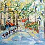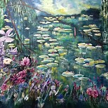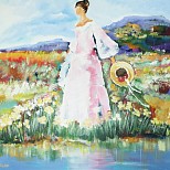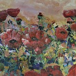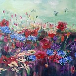 Een globale impressie van het schilderij "Feestelijk" 100x100cm.