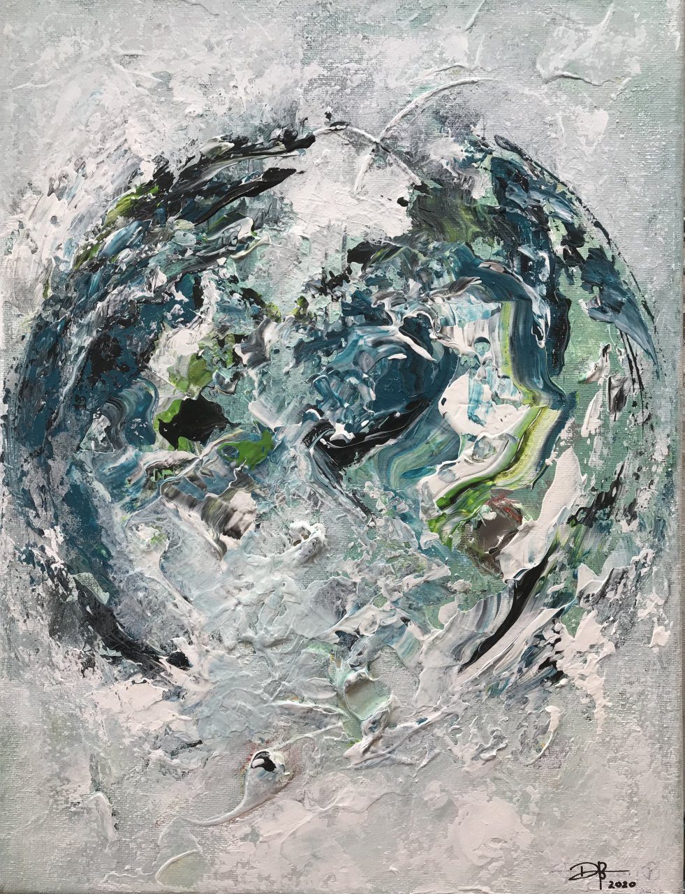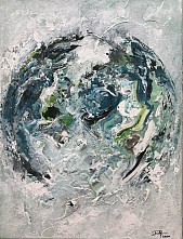Een globale impressie van het schilderij "Earthday 2021" 80x80cm.