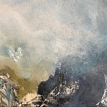 Een globale impressie van het schilderij "Between mountains and clouds" 80x80cm.