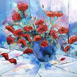 Vaas met klaprozen