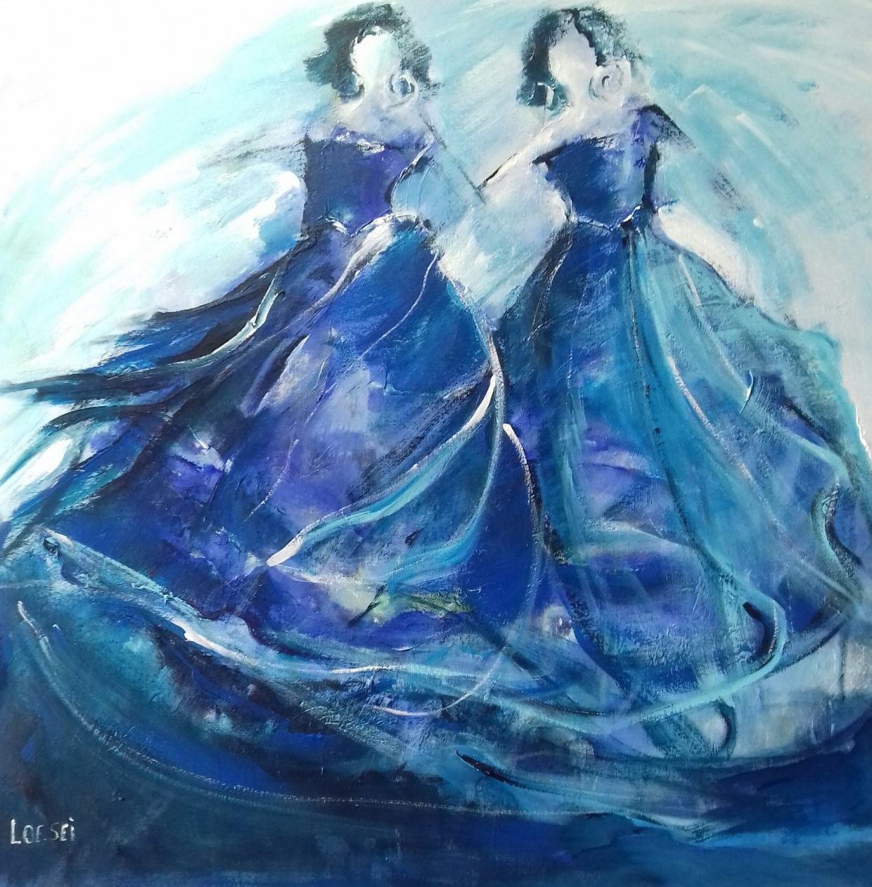 Een globale impressie van het schilderij "Dans" 100x100cm.