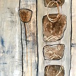 Acryl met mixed media. Werk met veel structuur en natuurlijke pigmenten.