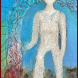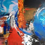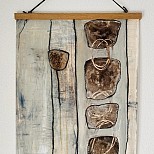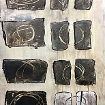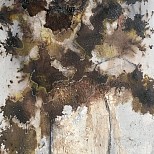 Acryl met mixed media. Werk met veel structuur en natuurlijke pigmenten.