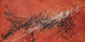 Een globale impressie van het schilderij "Orange" 140x70cm.