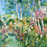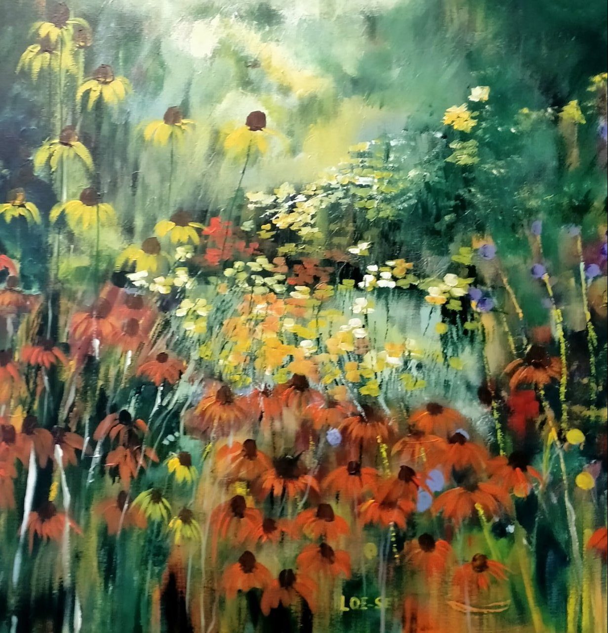 Een globale impressie van het schilderij "Prairietuin (1)" 100x100cm.