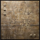 Rustig schilderij, mooie structuren, gevat in een baklijst met gouden rand. De prijs is inclusief de baklijst en wel 495 euro.