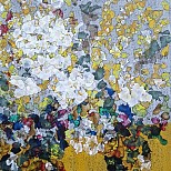 Abstract schilderij, uitgevoerd in Olieverf en Inkt op Linnen.