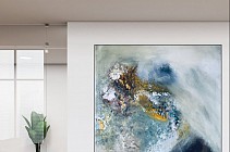 Een globale impressie van het schilderij "Everything wants to unfold" 100x100cm.
