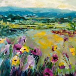 Een globale impressie van het schilderij "Waterlelies" 100x100cm.