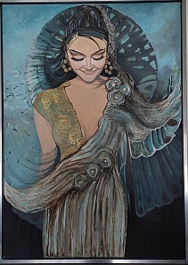 Acrylverf en structuurpaste geschilderd