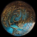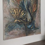 Met structuurpasta en acrylverf en goud pigmentpoeder