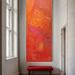 Mixed Media op 70×70 cm paneel, netjes afgewerkt met ophangsysteem.