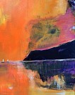 De zon kust het water en het water spiegelt de zon. Geïnspireerd door Emile Nolde en Herman van Veen. Acryl met coldwax op 50x70 cm doek met zwarte Tonio lijst.