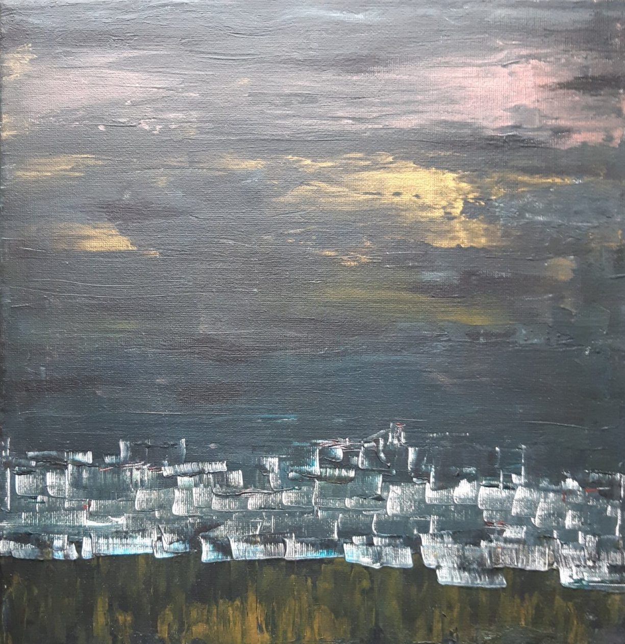 El Pueblo, acryl op canvas met metallic tinten.
