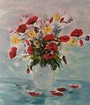 Een globale impressie van het schilderij "Klaprozen in vaas" 60x70cm.