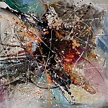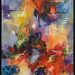 Een globale impressie van het schilderij "Sky explosion 6" 120x150cm.