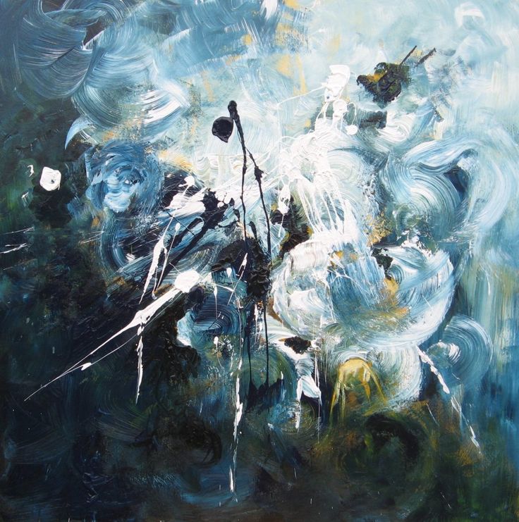 Abstracte improvisatie acryl op doek met zwart/zilverkleurige lijst