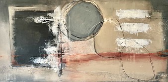 Een globale impressie van het schilderij "Out of the Box" 160x80cm.
