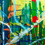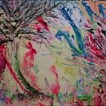 Een globale impressie van het schilderij "Betovering" 100x100cm.