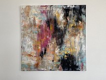Een globale impressie van het schilderij "True colours" 100x100cm.