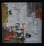 Klein abstract, vrolijk schilderijtje, maten incl. de zwarte baklijst zijn :