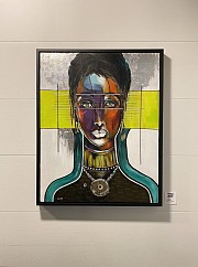 Focus. Intuïtief portret. Mixed media. Met goud en zilver blad. Acryl op canvas 3D doek. Incl. Zwarte lijst. Ophang klaar.
