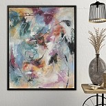 3 schilderijen acryl op papier met pass-partout en zwarte lijsten.