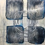 Mixed media werk op aquarelpapier op paneel van 0,9 cm dik.