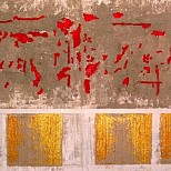 Een globale impressie van het schilderij "Landwave" 100x100cm.