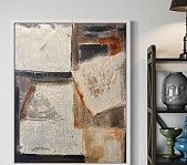 Abstract mixed media werk in aarde tinten op 80x100x4 cm een mooi zwaar linnen doek, in witte Tonio baklijst, Glanzend afgewerkt. Door de witte baklijst heeft het een zachte stoere uitstraling en past het prima in een modern of een industrieel interieur maar ook in een klassiek interieur zal het prima passen.