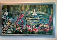 Een globale impressie van het schilderij "Waterlelies (incusief lijst)" 90x50cm.