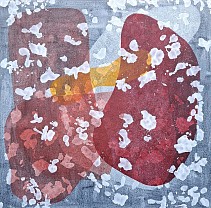 Een globale impressie van het schilderij "Third movement" 100x100cm.