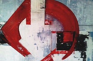 Een globale impressie van het schilderij "Manyfacts" 150x100cm.