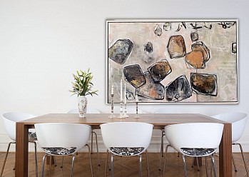 Stone Art. Formaat 105 x165 cm. Incl. Witte baklijst. Mixed media art. Met structuurpasta. Ophangsysteem. En afgelakt . Wil je dit kunstwerk bekijken of kopen, dit schilderij is geëxposeerd in de showroom van Totalhome in Lelystad.