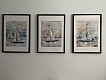 Acryl op papier met pass partout en zwarte lijst. Geïnspireerd door zeil race in Lanzarote. 3 luik . 3 x 50x70