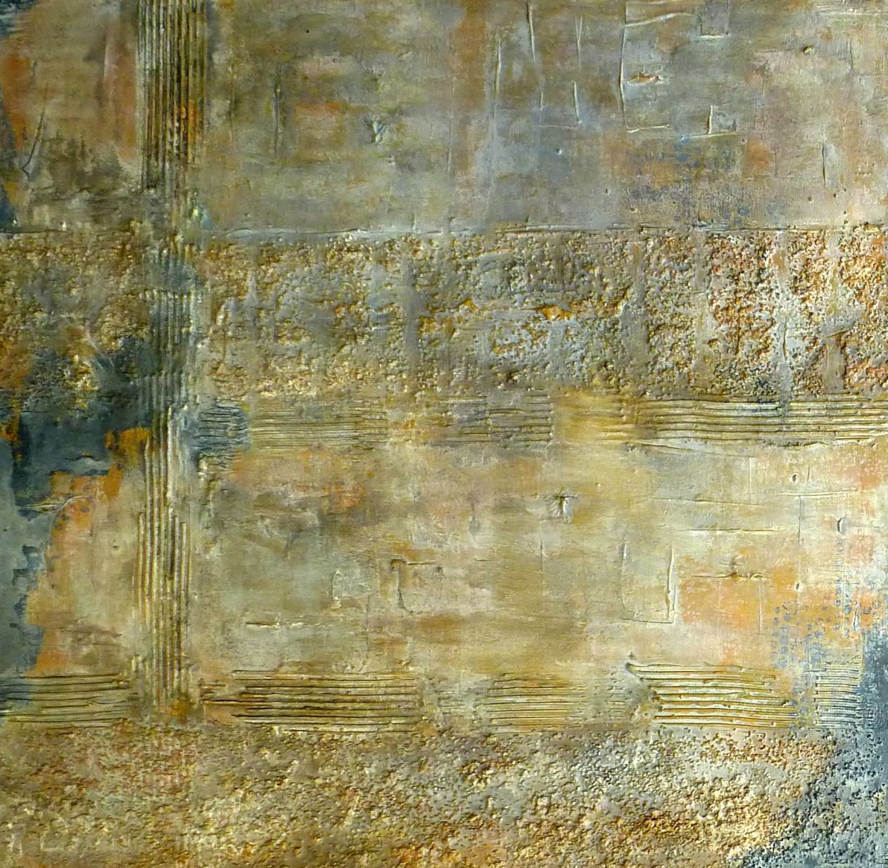Een globale impressie van het schilderij "Door de tand des tijds" 100x100cm.