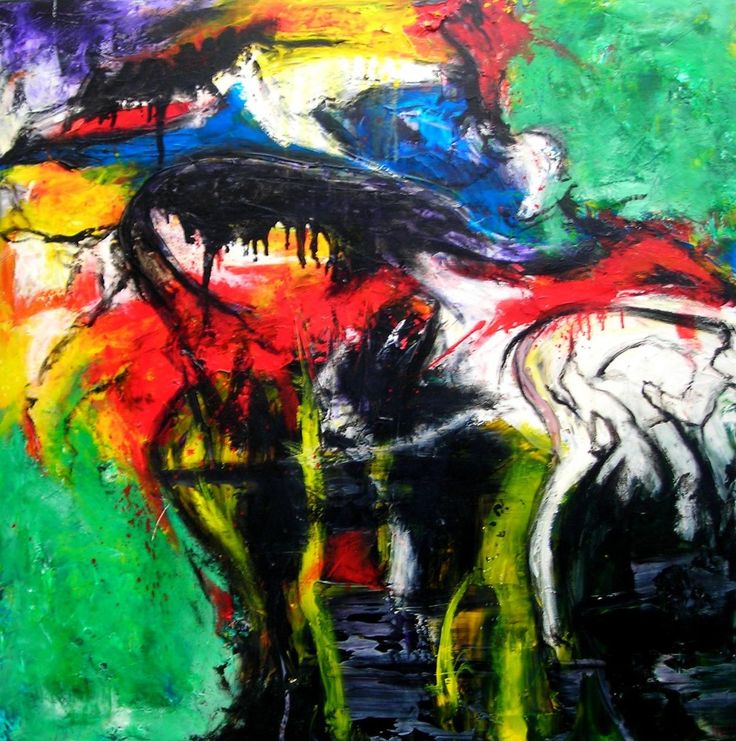 Een globale impressie van het schilderij "Landscape" 100x100cm.
