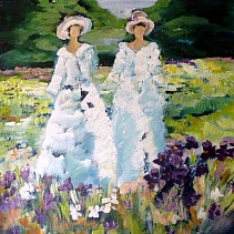 Romantisch schilderij met kleding uit de vorige eeuw
