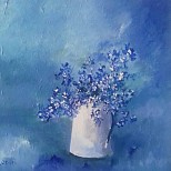 Een globale impressie van het schilderij "Bloemen" 80x80cm.