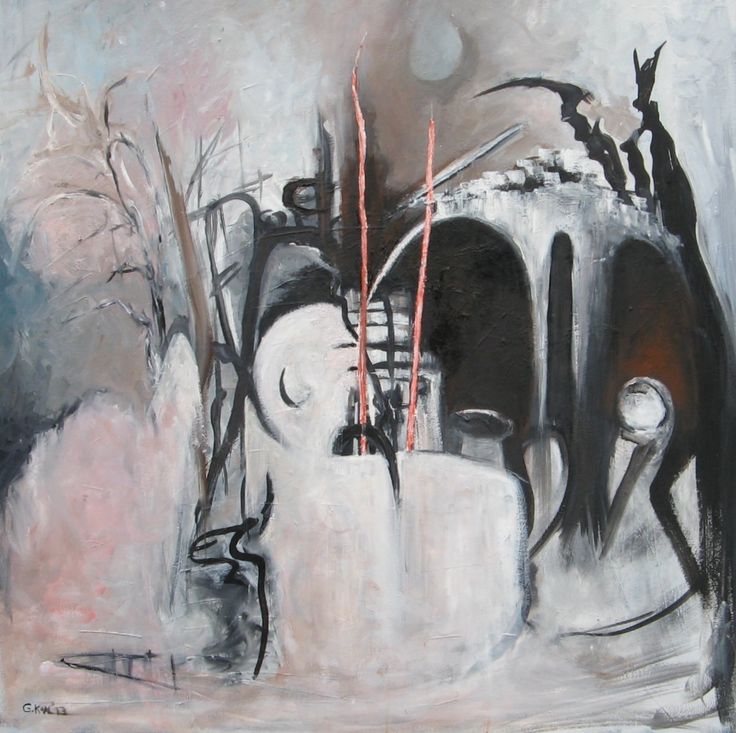 Een globale impressie van het schilderij "Transformatie" 70x70cm.