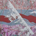 Een globale impressie van het schilderij "ARTIFICIAL LANDSCAPE nr. 8" 61x61cm.