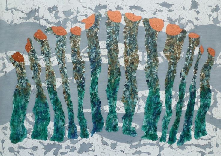 Abstract schilderij uitgevoerd in Olieverf en Inkt op Linnen