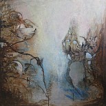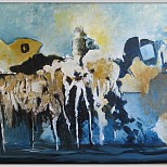 Een globale impressie van het schilderij "Zonder titel" 70x70cm.