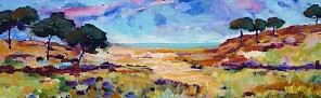 Een globale impressie van het schilderij "Veluwe" 140x40cm.