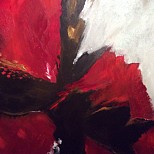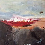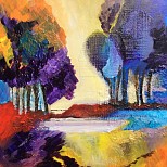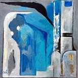 Acryl schilderij ,kleurrijk,waarin allerlei materialen verwerkt zijn.met gemengde technieken gemaakt.er us veel te zien in dit schilderij